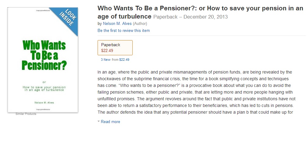 “Who wants to be a pensioner?” is a provocative book about what you can do to avoid the failing pension schemes, either public and private, that are letting more and more people hanging with unfulfilled promises.
