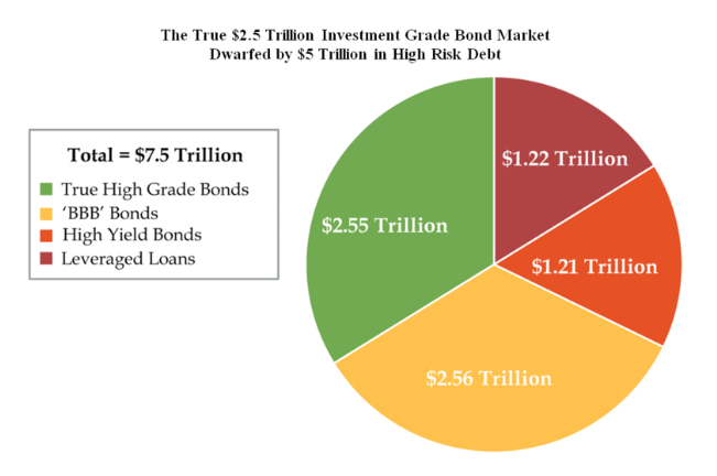 Danielle DiMartino Booth, in a Bloomberg piece, argued that the share of non-investment grade credit is bigger than the figures present, because there is a huge amount of BBB corporate credit (the last before “junk” status) being counted as investment grade. This means that even a small deterioration in fundamentals might kick the BBB tranche to junk and reveal a very different reality in the corporate credit market.