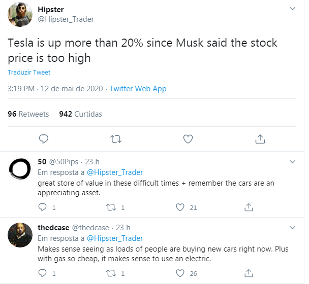 This one on Elon’s remark that Tesla’s stock price is too high.