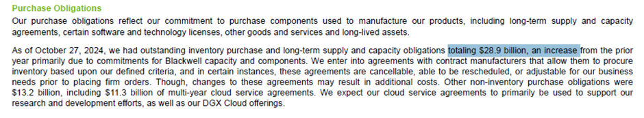 Overcommitted to Supply: NVIDIA has locked in $28.9 billion in supply commitments, expecting ongoing high demand for its Hopper and Blackwell architectures.
