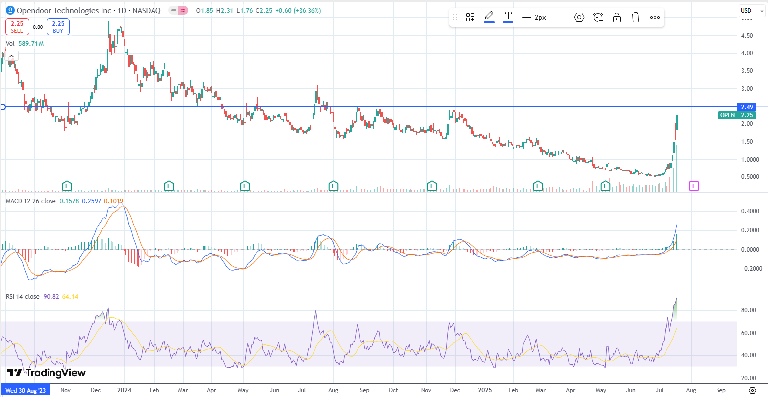 The rally in Opendoor (OPEN) comes on the heels of a long, grinding decline, and that backdrop really changes how this move should be viewed. After extended downtrends, sharp upside moves aren’t unusual—they can be either classic “dead-cat bounces” or the start of real trend reversals.