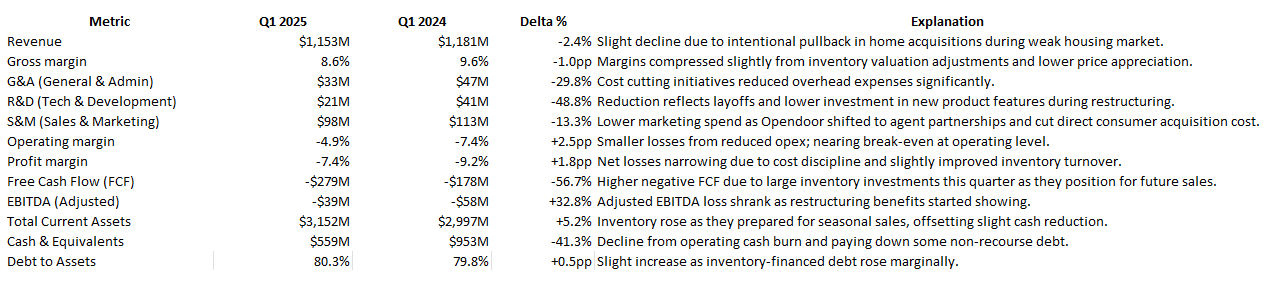 On the margin side, the turnaround story is just as critical. Margins were crushed between 2022 and 2024, thanks to overpaying for homes as prices fell, high holding costs from unsold inventory, and ineffective marketing spend. The new strategy directly addresses these pain points. Opendoor is now buying homes at about a 10% discount to fair value and timing purchases to avoid peak-season pricing. This cuts hold times and carrying costs. By shifting to agent-driven lead generation, customer acquisition costs are down sharply. Plus, the referral model adds revenue without tying up capital in inventory. On top of that, aggressive cost cuts—including layoffs of 300 employees in Q4 2024 and another 110 in Q1 2025—are saving roughly $20 million per quarter.