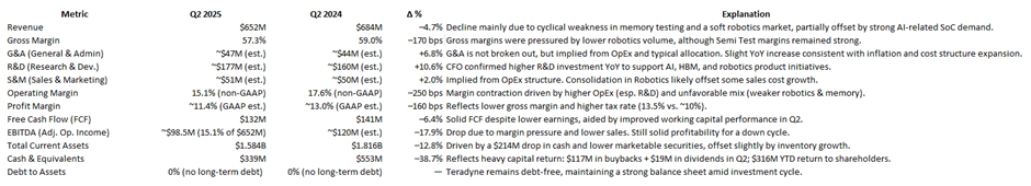 Just went through Teradyne’s Q2 2025 numbers and figured I’d share a breakdown for anyone tracking the name. Not a blockbuster quarter, but definitely some interesting signals under the hood, especially if you’re following the AI test space.