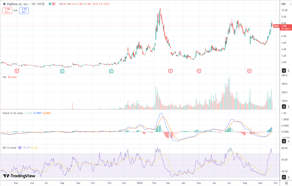 Bottom line. BBAI is a classic asymmetric optionality case right now. The technicals argue for a legitimate momentum turn — gap reclaim, rising volume, RSI regime shift, MACD above zero, and a very clear breakout level — while the fundamentals argue patience: guidance reset, EBITDA uncertainty, dilution, and a multi-quarter capture/conversion slog. Those two realities aren’t mutually exclusive. They intersect if (and only if) management converts the OB3 opportunity, diversifies the pipeline, and turns that $391M cash pile into revenue scale with margin. Until then, trade the tape with discipline and size the investment like a speculative sleeve. If they start printing funded awards and backlog inflects while the stock holds above $9.2–$9.6, the tape will have been right to front-run; if not, respect your levels and don’t marry the ticker.