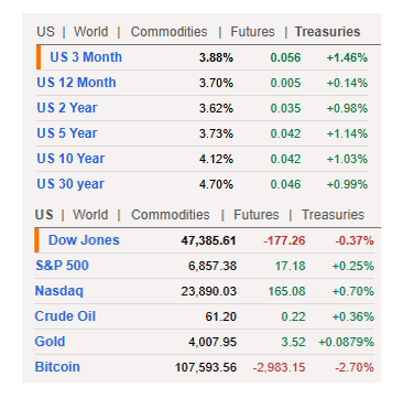 Macro tape: BTC is -~2.7% on the day and UST 10Y is a touch higher (~4.12%). Slight headwind for anything “capex + risk,” but not thesis-breaking.