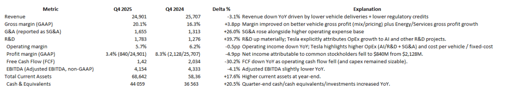 And the reason that matters: Tesla ended Q4 with $44.1B of cash, cash equivalents and investments, so this isn’t a “we have to” CapEx year. It’s a “we’re choosing to” CapEx year.