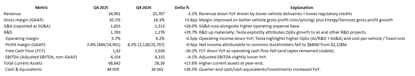 And the reason that matters: Tesla ended Q4 with $44.1B of cash, cash equivalents and investments, so this isn’t a “we have to” CapEx year. It’s a “we’re choosing to” CapEx year.