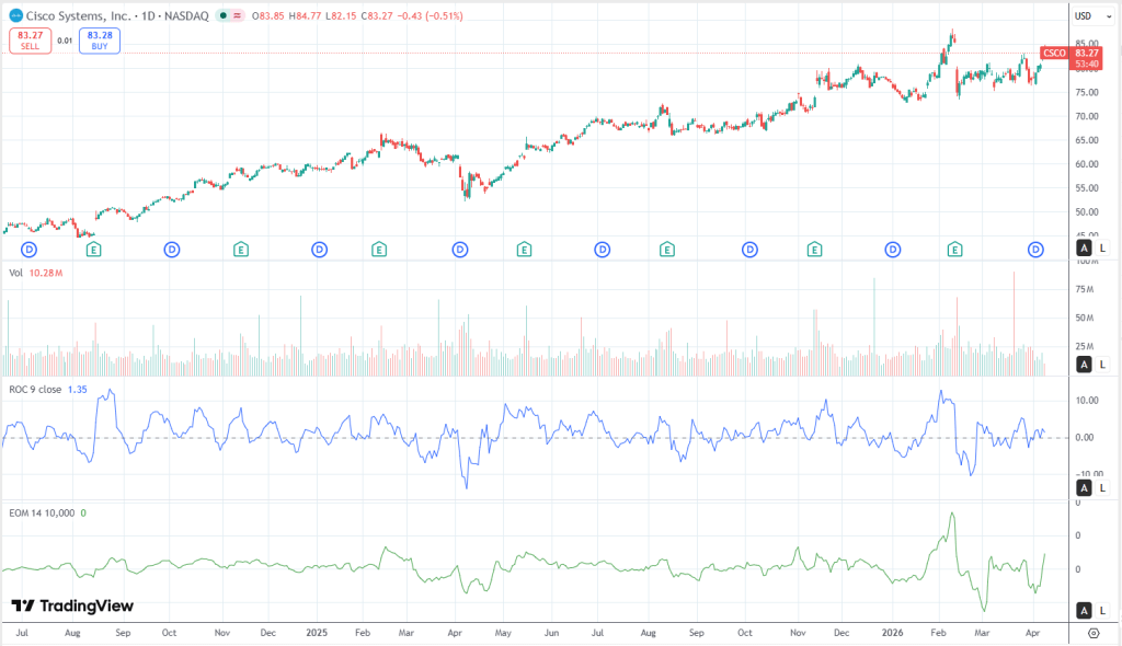 I view Cisco as constructively bullish in this setup, but not in the “set it and forget it” way. This is a “prove it” tape. The business is showing credible fundamental momentum, networking is strong, operating leverage is real, and the recurring base remains meaningful.